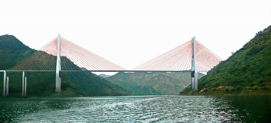 黔南布依族苗族自治州羅甸縣與廣西壯族自治區(qū)河池市天峨縣的交界處,跨越紅水河的高速公路斜拉橋,是銀百高速公路G69惠水至羅甸段(惠羅高速)的控制性工程,大橋2013年12月開工,整個(gè)工程預(yù)計(jì)在2016年10月完工,建成后貴陽至龍邦口岸距離將縮短至400公里,是貴州面向東盟最便捷的出境通道,對(duì)促進(jìn)當(dāng)?shù)氐慕?jīng)濟(jì)發(fā)展將起到積極推動(dòng)作用。