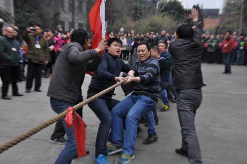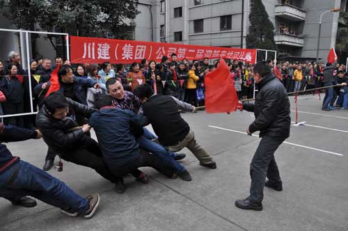 2015年1月,川建(集團(tuán))開(kāi)展“迎春拔河比賽”活動(dòng),活動(dòng)主旨為豐富員工的文化生活,增強(qiáng)員工的體育鍛煉意識(shí),提高團(tuán)隊(duì)合作精神,進(jìn)一步增強(qiáng)企業(yè)凝聚力。