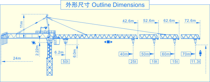 SCM-M900(50t)塔式起重機(jī),是我公司吸收國(guó)外塔機(jī)技術(shù),自行設(shè)計(jì)制造的大型上回轉(zhuǎn)自升式塔式起重機(jī)。該機(jī)型設(shè)計(jì)新穎,起升、回轉(zhuǎn)、變幅、行走、頂升等機(jī)構(gòu)均采用國(guó)外技術(shù),性能先進(jìn)可靠。 該機(jī)具有軌道行走式、固定附著式,多種使用類型。變幅有單小車和雙小車兩種,單小車情況下最大起重量50t,端部吊重10t;雙小車情況下最大起重量50t,端部吊重11.3t。