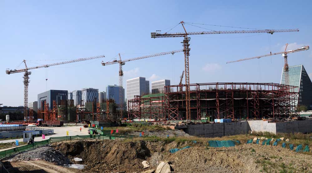 C7050在成都大魔方世界級演藝中心工程建設中,此工地共有川建塔機6臺,其中C7050塔式起重機1臺,C7030塔式起重機4臺,C5013塔式起重機1臺。