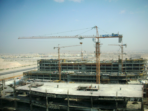 川建共18臺(tái)塔機(jī)、16臺(tái)施工升降機(jī),參與施工。其中9臺(tái)C6018、9臺(tái)C7030塔機(jī)